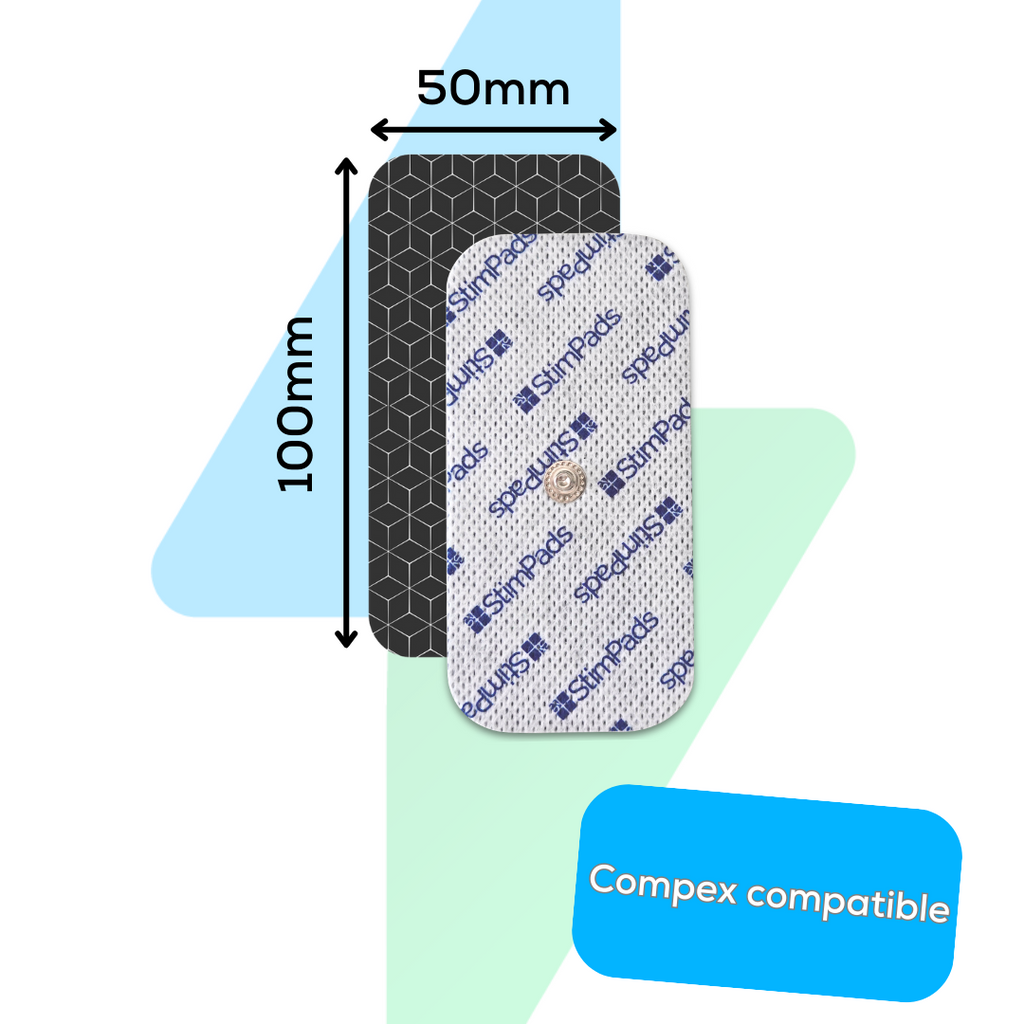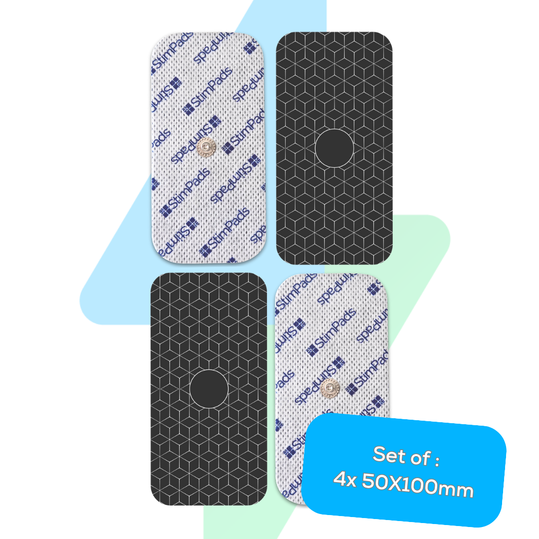 StimPads PRO Silver Electrodes for Compex Devices - 4 Pcs of 50X100mm with SINGLE 3,75mm EasySnap Connector